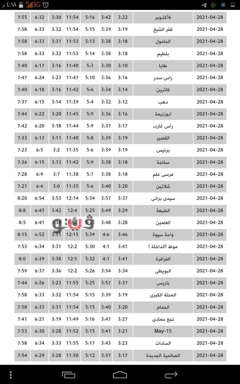 ويوضح الجدول مواقيت الصلاة اليوم كالتالي