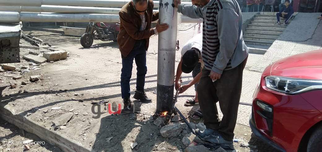 بشارع النيل و مد كابلات وإنارة جانب شركة المياه بشارع البحر الأعظم.