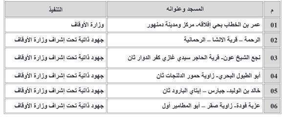 وأشارت وزارة الأوقاف أن إجمالي ما تم افتتاحه على مستوى الجمهورية 1395 مسجدًا، منها 1300 مسجد إحلالًا وتجديدًا، و95 مسجدًا صيانة وترميمًا، والمساجد التي سيتم افتتاحها اليوم الجمعة بمحافظة البحيرة هي: