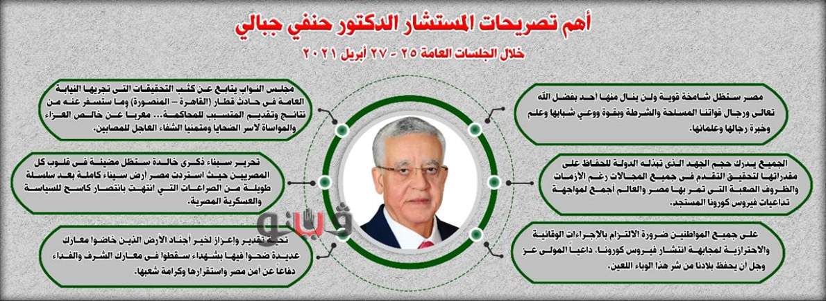وخلال الجلسات وجه المستشار الدكتور حنفي جبالي رئيس مجلس النواب، ٦ رسائل على النحو التالي: