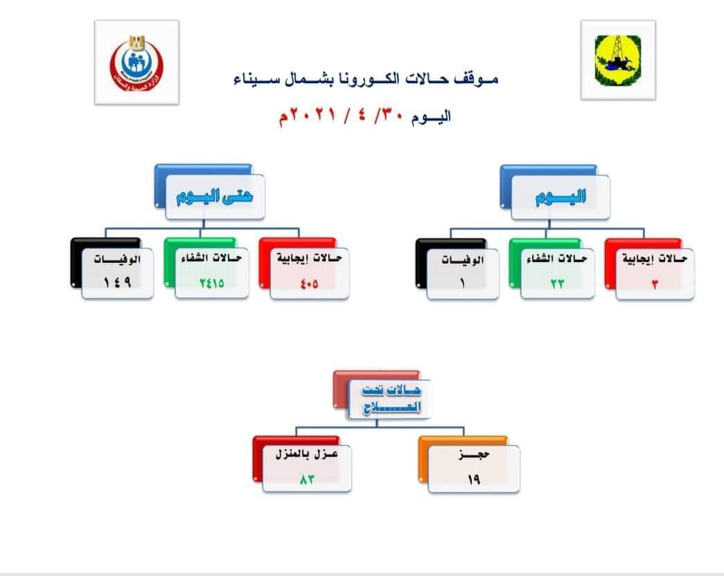 3 حالات إيجابية ووفاة مصاب بفيروس كورونا في شمال سيناء