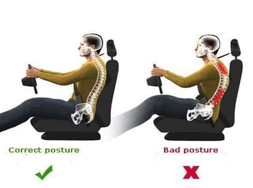 يجب أن يكون ظهرك مستقيمًا و تتجنب التجويف و الفراغات، و من الأفضل أن تكون وضعية الركبتين أعلى من مستوى الحوض، وقم بتقليل المسافة بين المقعد ومقود الحركة حتى تتمتع بقيادة مثالية، ومن الضروري أيضًا أن تقوم بتغير وضعية القيادة من وقت إلى آخر، ولا شك أن ضبط مسند الرأس له أهمية كبيرة لراحة الرقبة والعمود الفقري.