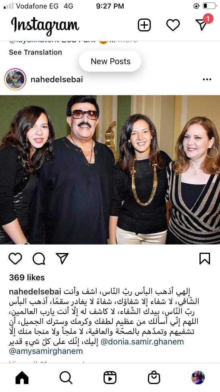 السباعي علي مساندة عائلة الفنان سمير غانم، بعد إصابتها بفيروس "كورونا"