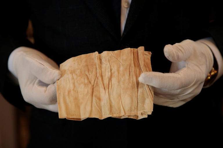 ويقدر لقطعة القماش الملطخة بالدم أن تباع بمبلغ يصل إلى 15 ألف يورو (18 ألف دولار).
