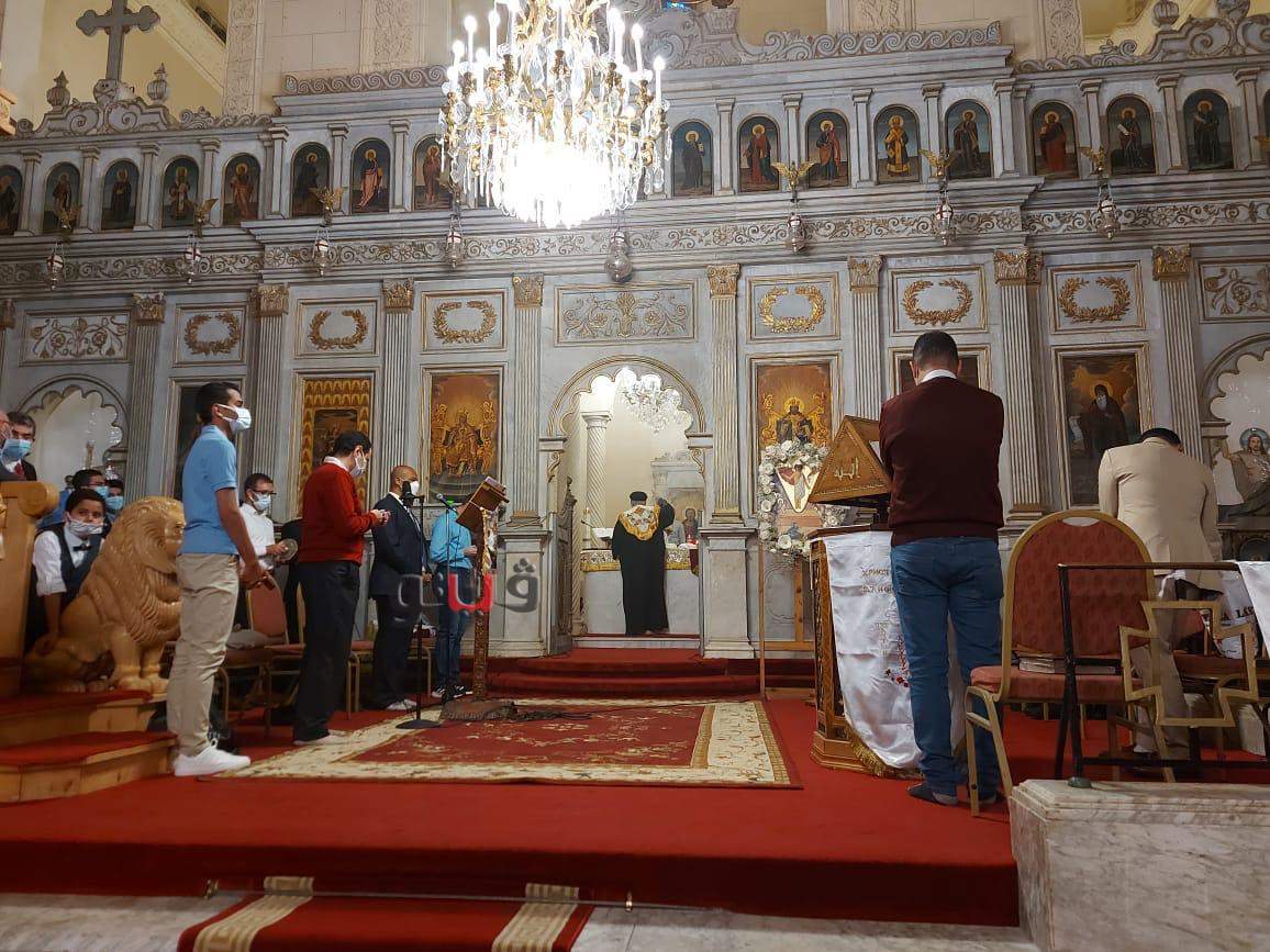 وسط إجراءات احترازية.. الكنيسة المرقسية بالإسكندرية تقيم قداس عيد القيامة