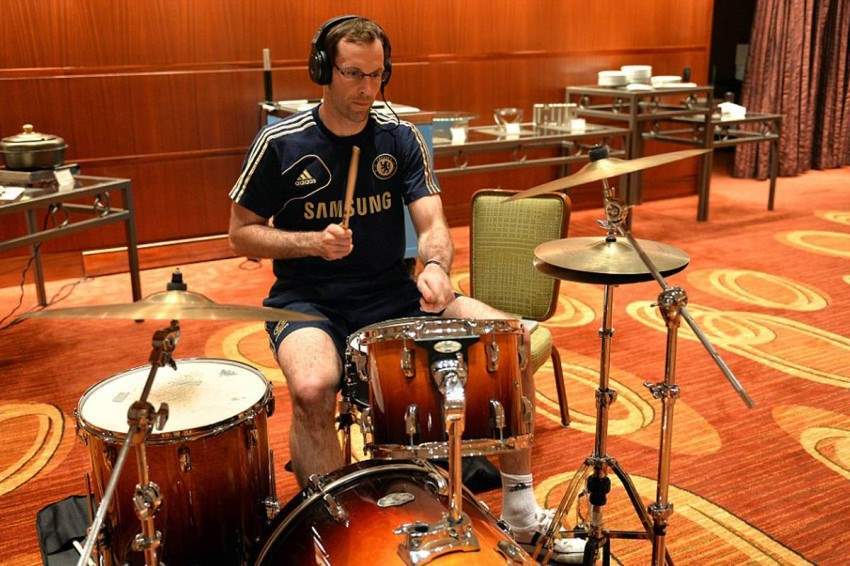لم يكتفِ بيتر تشيك بتغيير وجهته الرياضة بعد احترافه رياضة هوكي الجليد بعد اعتزال كرة القدم، بل اتجه الحارس التشيكي العملاق إلى العزف على آلة الدرمز الإيقاعية المعقدة.
