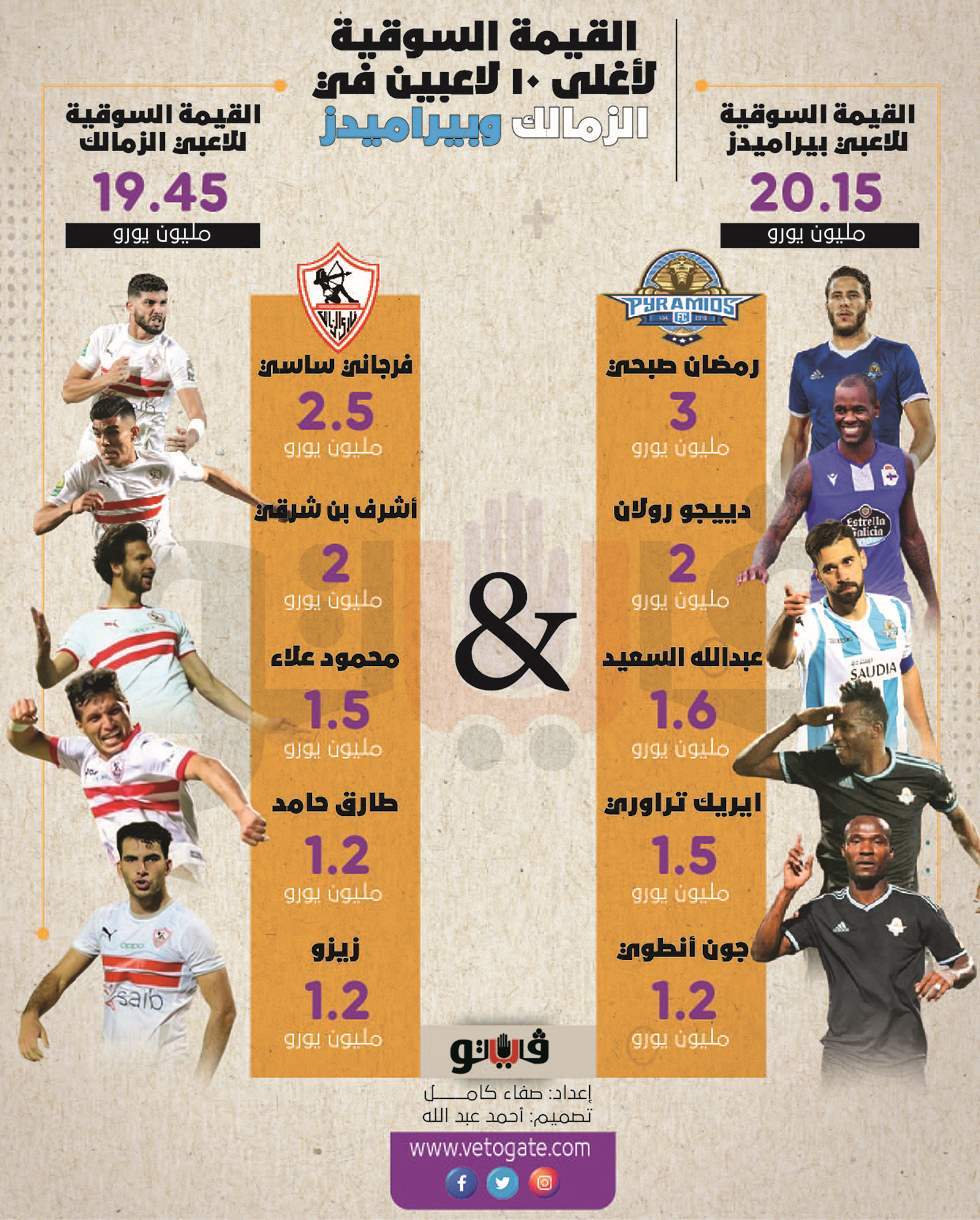 القيمة السوقية لأغلى 10 لاعبين في الزمالك وبيراميدز | انفو جراف