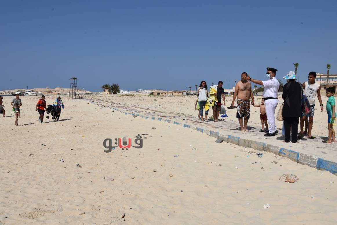 وقام رجال الشرطة خلال الجولة بإخلاء أحد المناطق بكورنيش مرسى مطروح تواجد بها أسرة يقومون بالإستجمام بشواطئ مرسي مطروح تزامناً مع الطقس الحار الذي يضرب المحافظة.