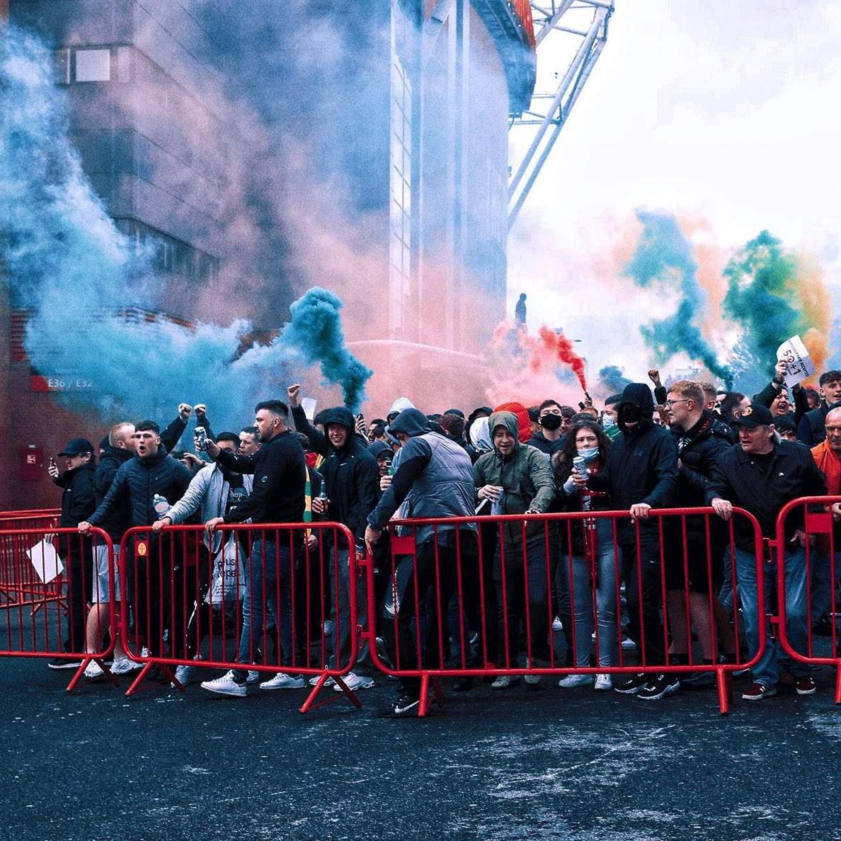 واقتحمت جماهير مانشستر يونايتد ملعب أولد ترافورد منذ دقائق، رافعة لافتات تعلن من خلالها رغبتها في رحيل ملاك النادي، بسبب مشاركتهم في تدشين دوري السوبر الأوروبي.