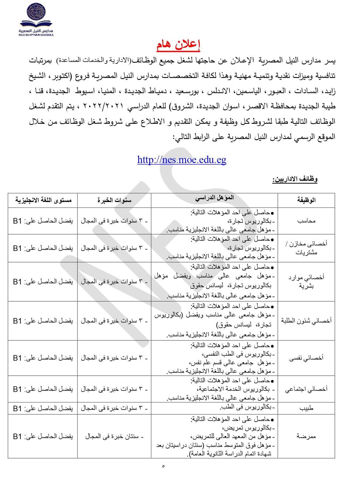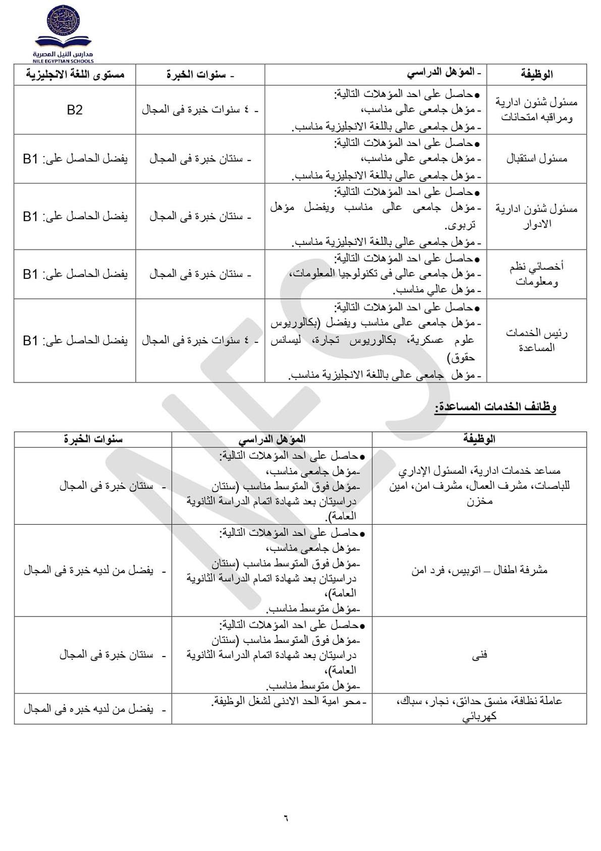 مراجعة نظام وشروط التقدم للعمل بمدارس النيل المصرية المتاحة على الموقع الرسمي لمدارس النيل المصرية.