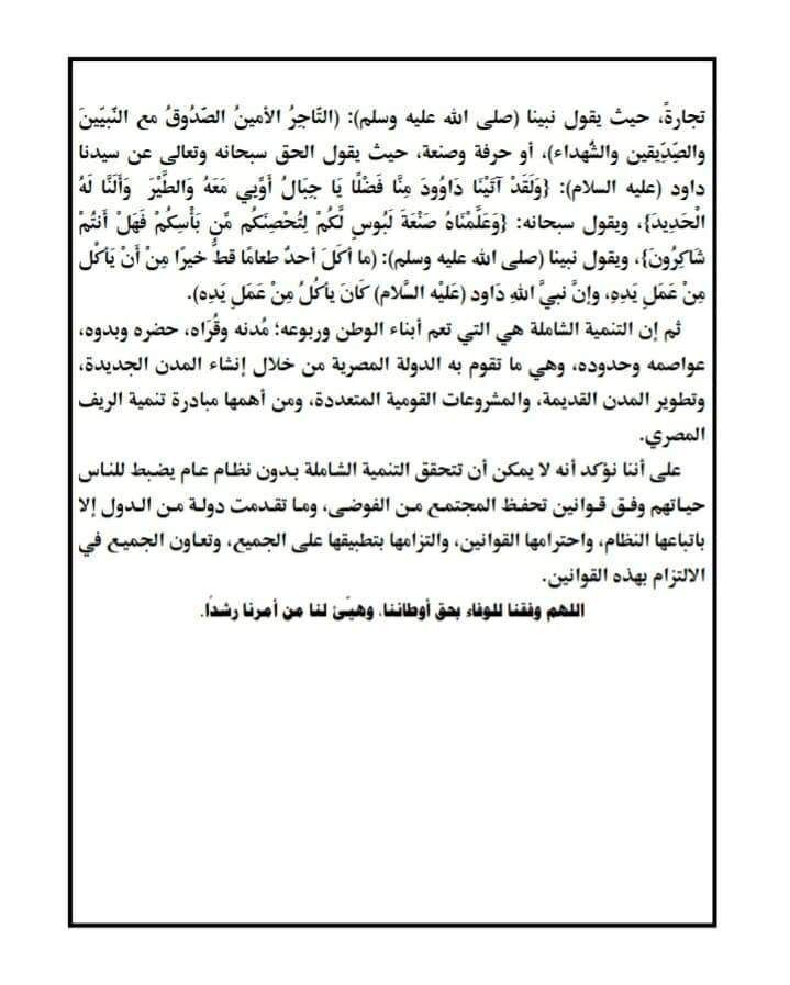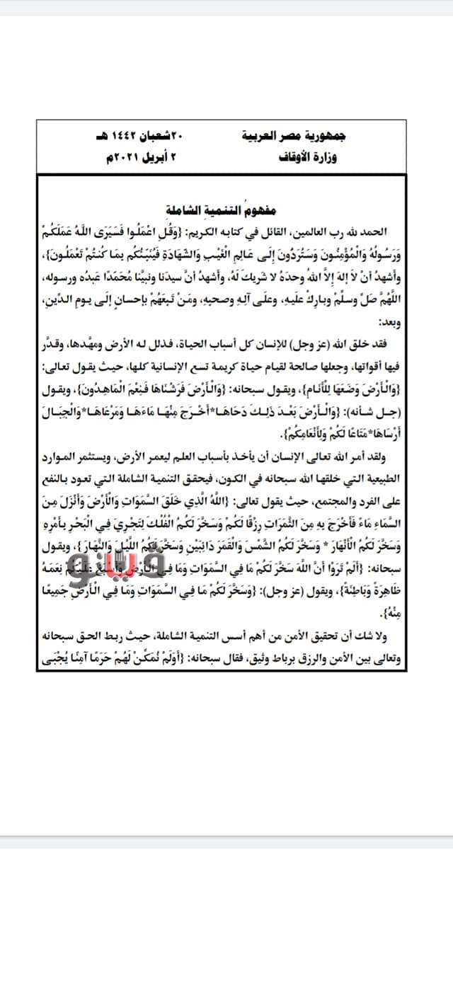 نشرت وزارة الأوقاف موضوع خطبة الجمعة القادمة تحت عنوان “فضل ليلة القدر.. وصدقة الفطر”، مع التأكيد على جميع الأئمة الالتزام بموضوع الخطبة نصا أو مضمونا على أقل تقدير.