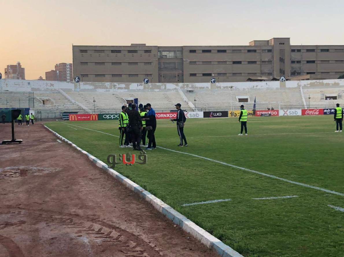 كما منع ضباط الامن أي شخص من التواجد بمحيط استاد غزل المحلة بالاضافة لقيام الامن بتفتيش كافة الغرف المغلقة بإستاد غزل المحلة للتكد مع عدم وجود جماهير داخل الغرف المغلقة.