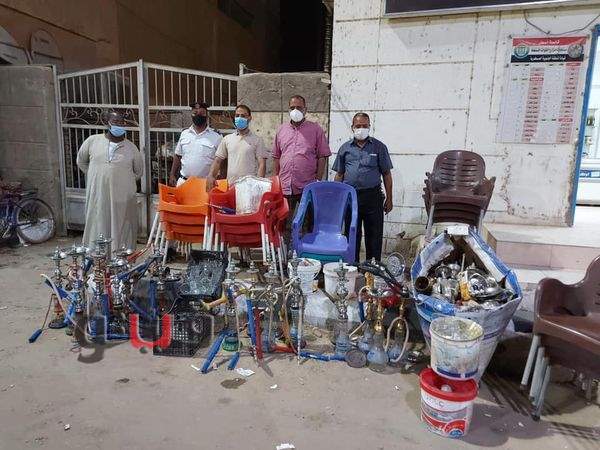 وفي السياق ذاته، تم المرور على المقاهي للتأكد من اتباع الاجراءات الاحترازية وخلال الحملة تم مصادرة 46 شيشة وتحرير محضر بالواقعة، وذلك في إطار مواجهة مخالفات الإجراءات الوقائية المتبعة لمكافحة فيروس كورونا.