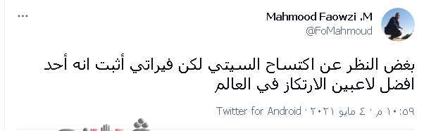 وكتب محمود فوزي: "بغض النظر عن اكتساح السيتي لكن فيراتي أثبت إنه أحد افضل لاعبين الارتكاز في العالم".