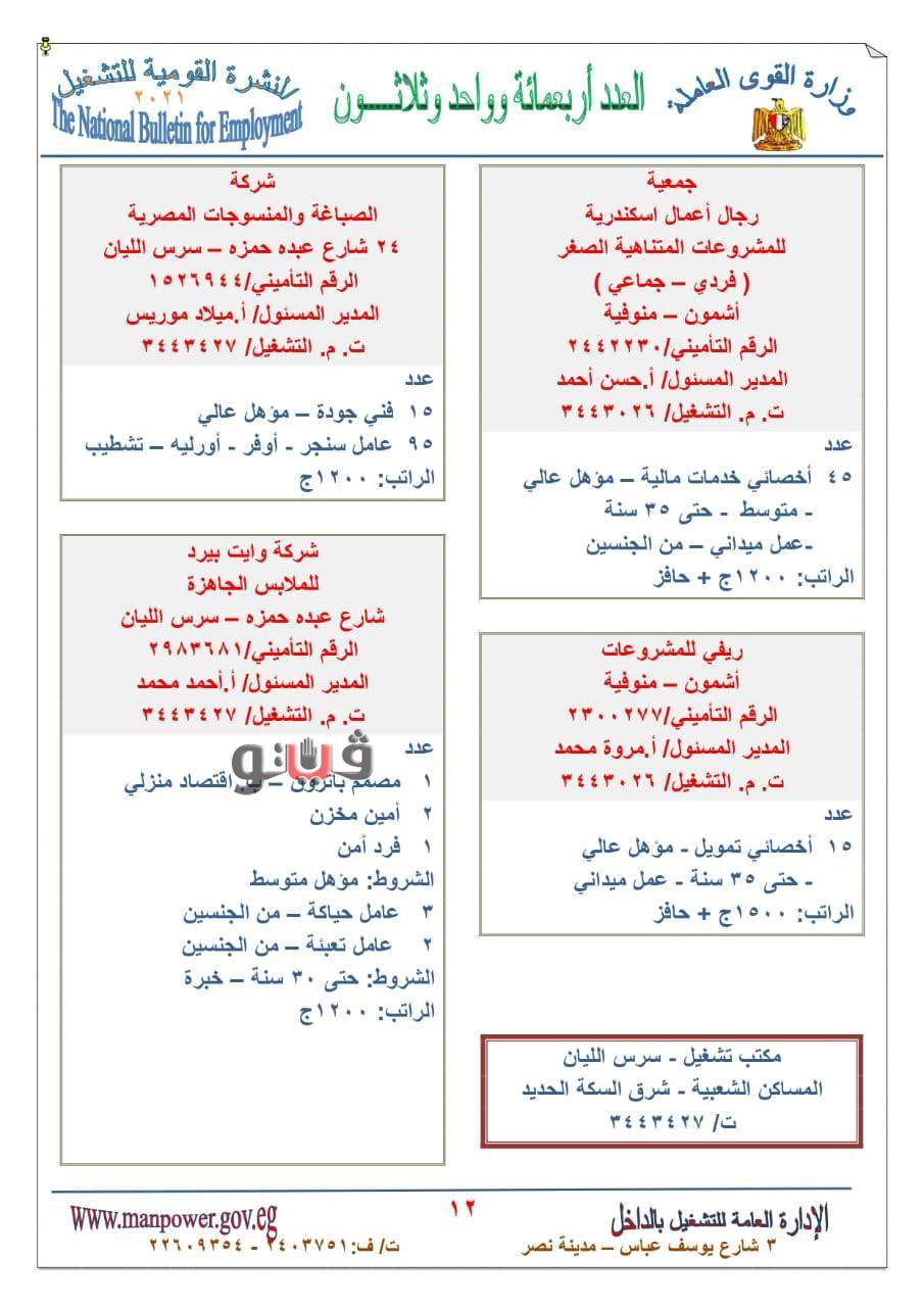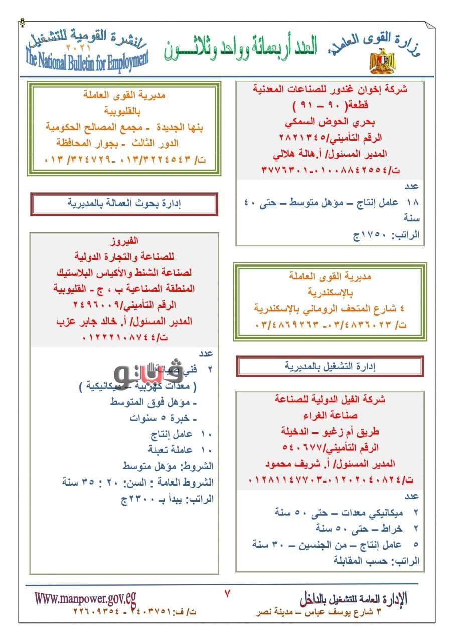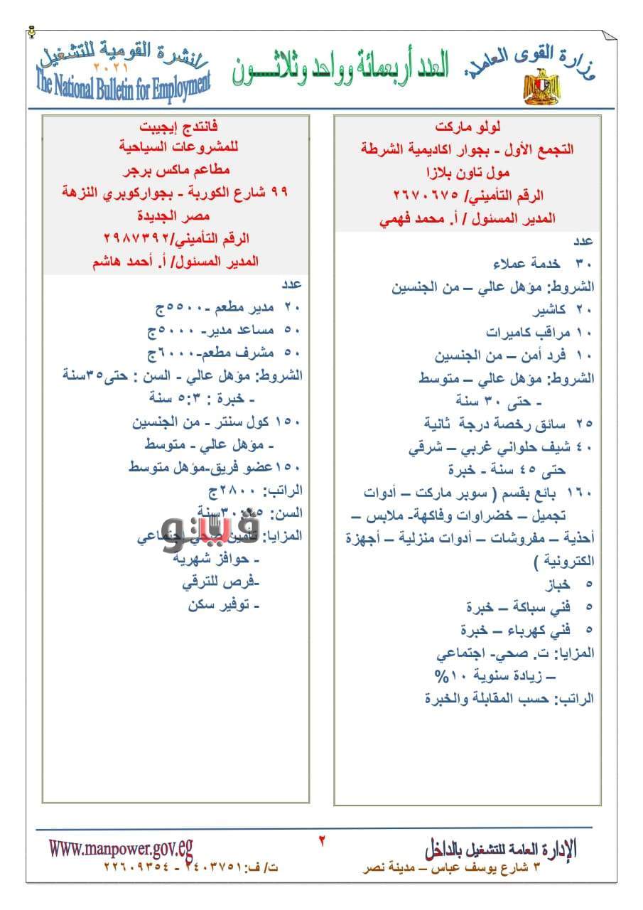 وفيما يلي تفاصيل فرص العمل بنشرة الوظائف :