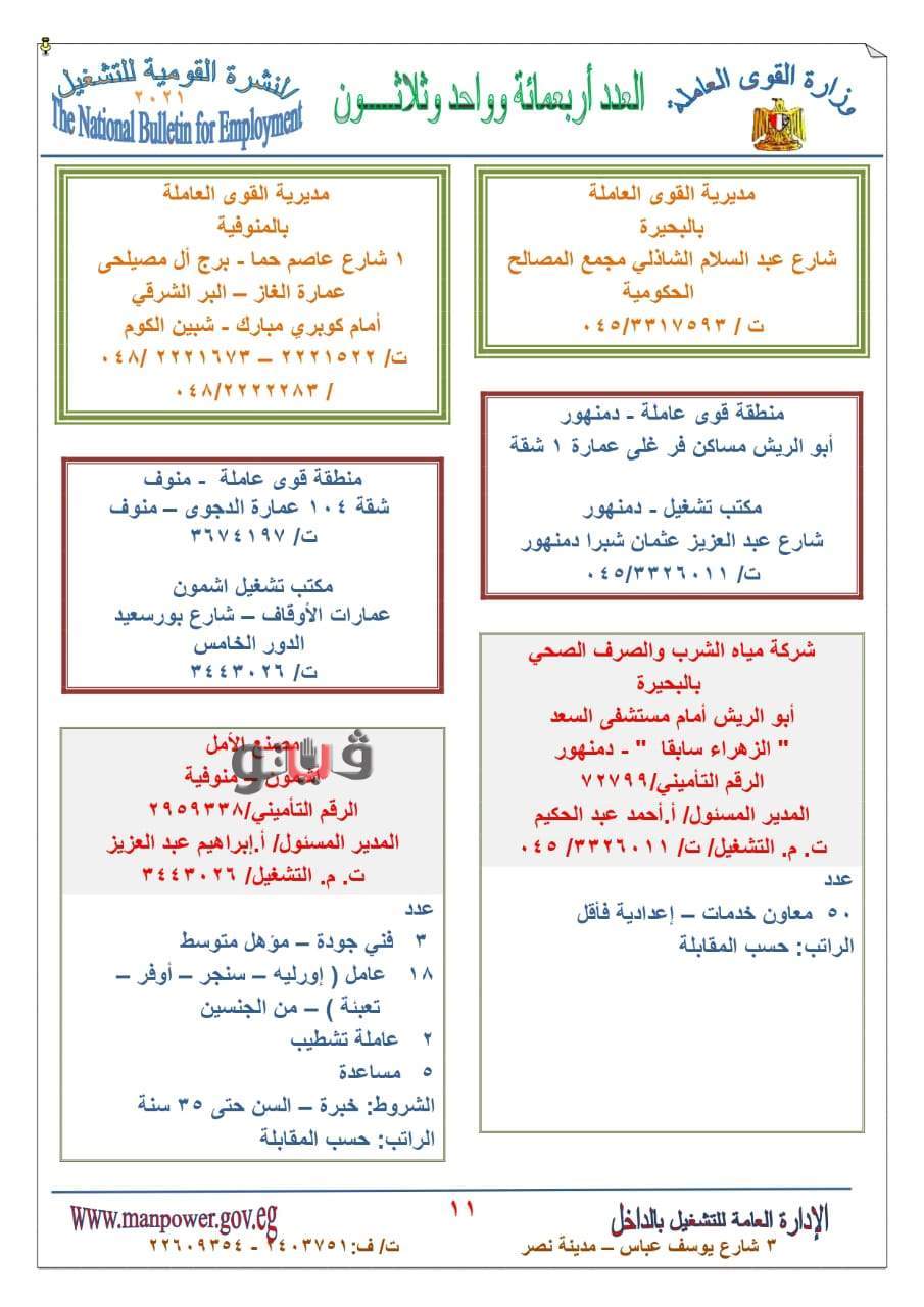 كما وفرت مديرية القوى العاملة بالقليوبية مجموعة من فرص العمل شملت : 2 مهندسين انتاج ، و 2 مهندس تصميمات ،و مهندس جودة ، و 2 مندوب مبيعات ، و 68 عمال انتاج ، و 5 عمال تفصيل وحياكة رجالي ، وأخصائي شئون عاملين ، و 5 فنى صيانة ، و 12 عمال تعبئة ، و 3 عمال خدمات ، و 5 فنى لحام ، و 13 فنى حدادة ، و 16 عامل تركيبات ، و 3 مسئولة كاشير ، و 5 فرد أمن ، و 4 منسق ممرات ، و 3 جزار ، و 10 نساج ، و 50 عامل خياطة ، و 25 عامل تطريز كمبيوتر ، و 20 عامل لاستيفاء نسبة 5 % من ذوى الهمم براتب 1800 جنيه بشركتين.