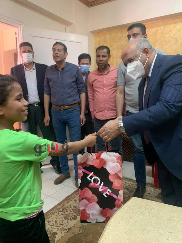 قام الدكتورعاطف حسين خلال الزيارة بقضاء يوم ترفيهي واللعب مع الأطفال وقام أيضاً بتوزيع كمية من المواد الغذائية والهدايا على الأيتام،