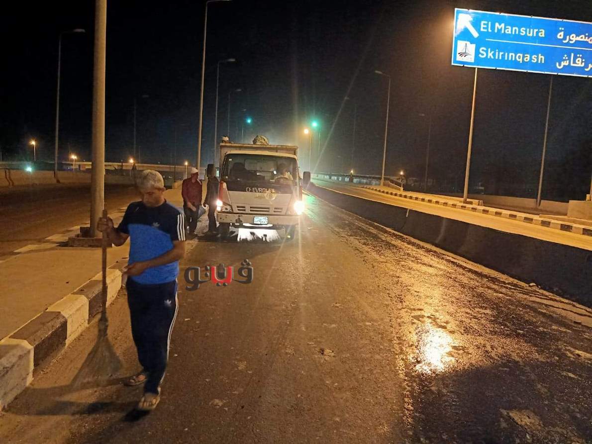 شن قيادات محافظة الدقهلية حملة ليلية مكبرة لرفع القمامة وكنس ونظافة طريق رافد جمصة.