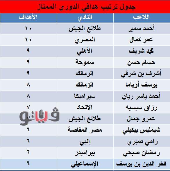 جدول ترتيب هدافي الدوري الممتاز