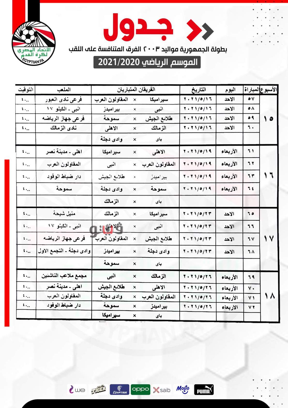 قررت إدارة المسابقات بالاتحاد المصري لكرة القدم تعديل مواعيد الجولات الأربع الأخيرة لبطولة الجمهورية مواليد 2003 في ضوء القرارات الأخيرة الخاصة بمواجهة فيروس كورونا.