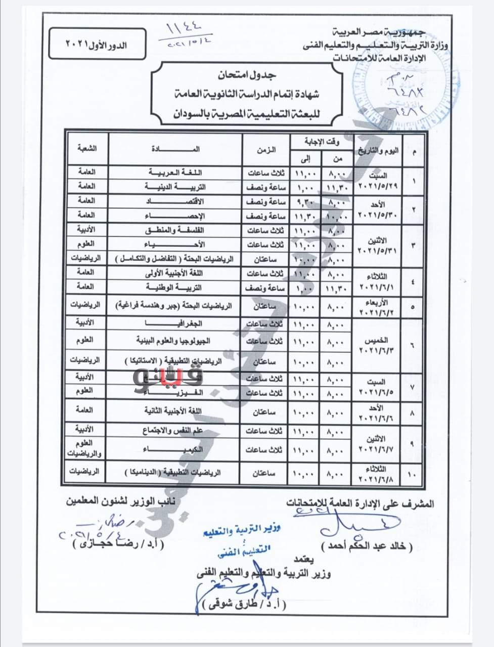 اعتماد جدول امتحان الثانوية العامة للبعثة التعليمية المصرية في السودان