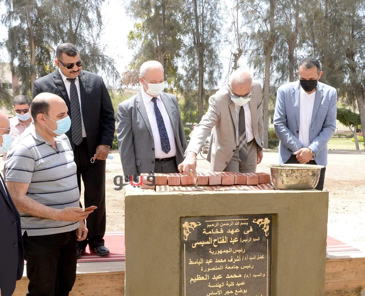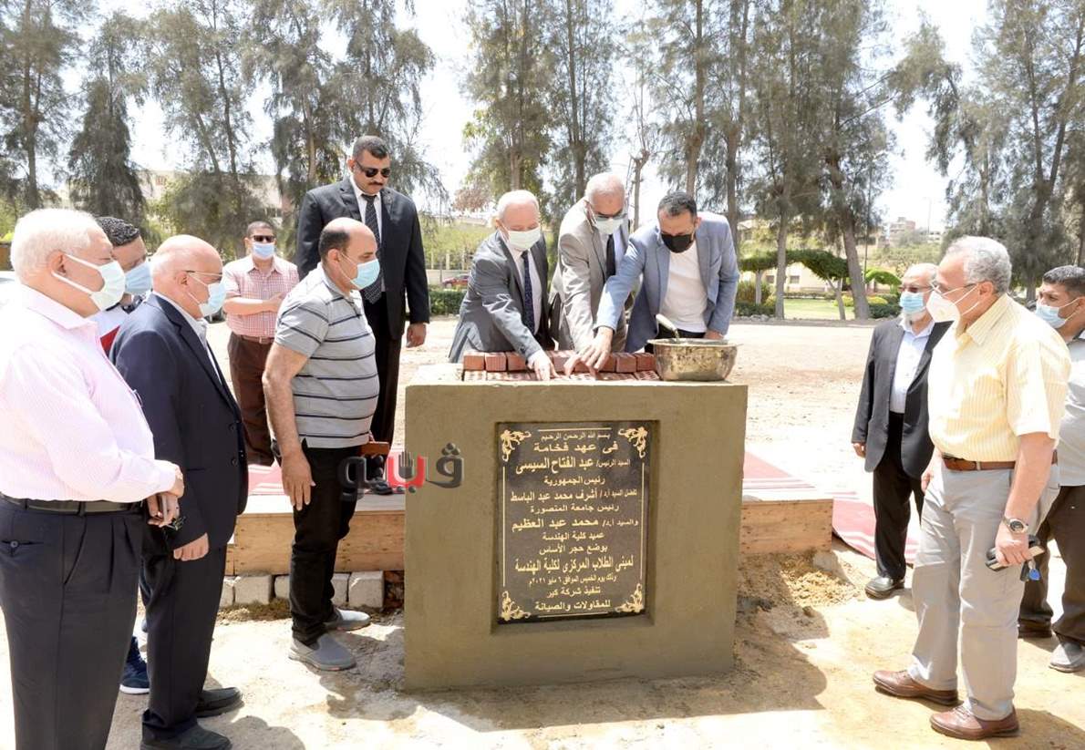 كما قام رئيس الجامعة بوضع حجر الأساس لمبني الطلاب المركزي بكلية الهندسة جامعة المنصورة على مساحة 2150 متر مربع
