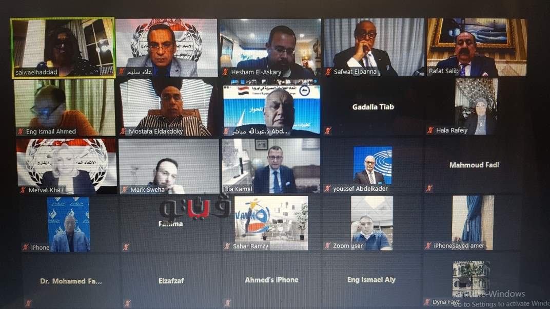عقد الاتحاد العام للمصريين في الخارج واحدة من ندواته الناجحة عبر منصة زووم بعنوان تحديات الوطن ودور المصريين في الخارج في شرح أبعادها للمجتمع الدولي .