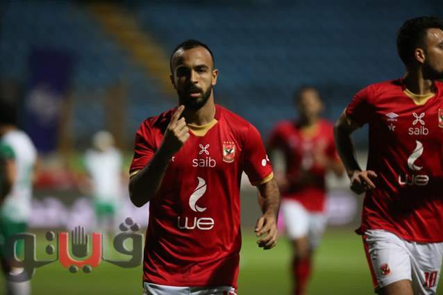 وأحرز بدر بانون هدف الأهلي الأول من ضربة جزاء تسبب فيها مروان محسن بعد عركلته داخل منطقة الجزاء.