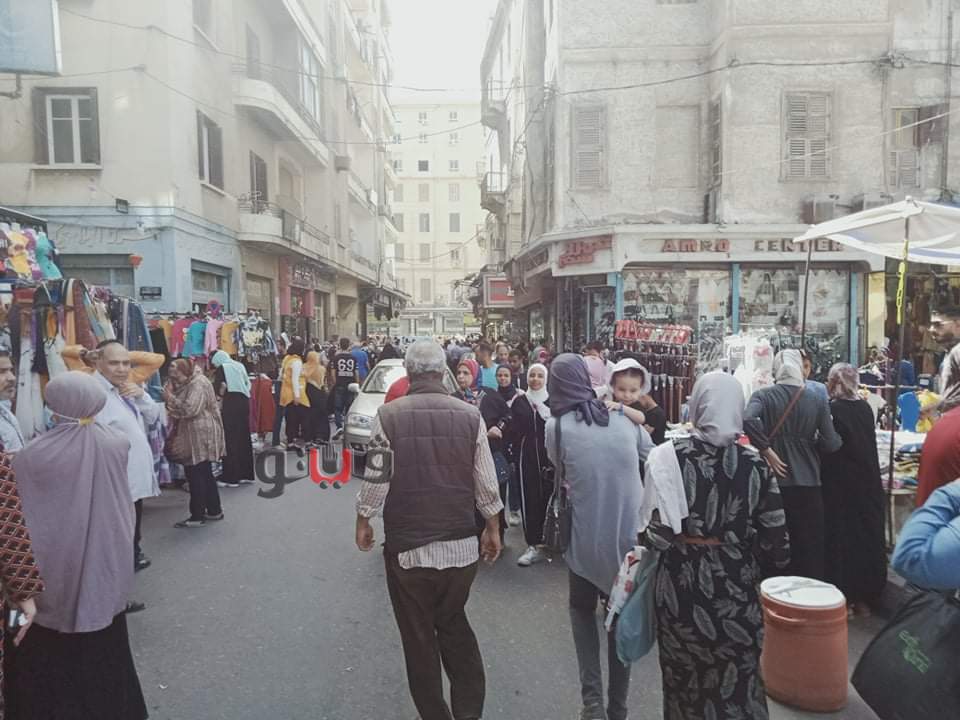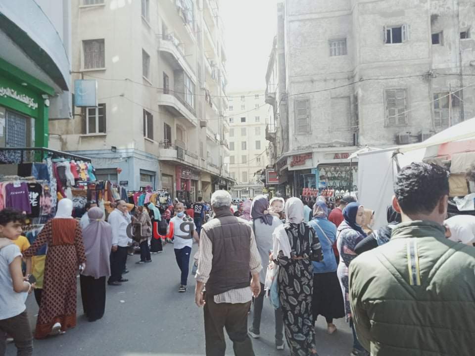 زحام في أسواق الإسكندرية لشراء ملابس وكعك عيد الفطر