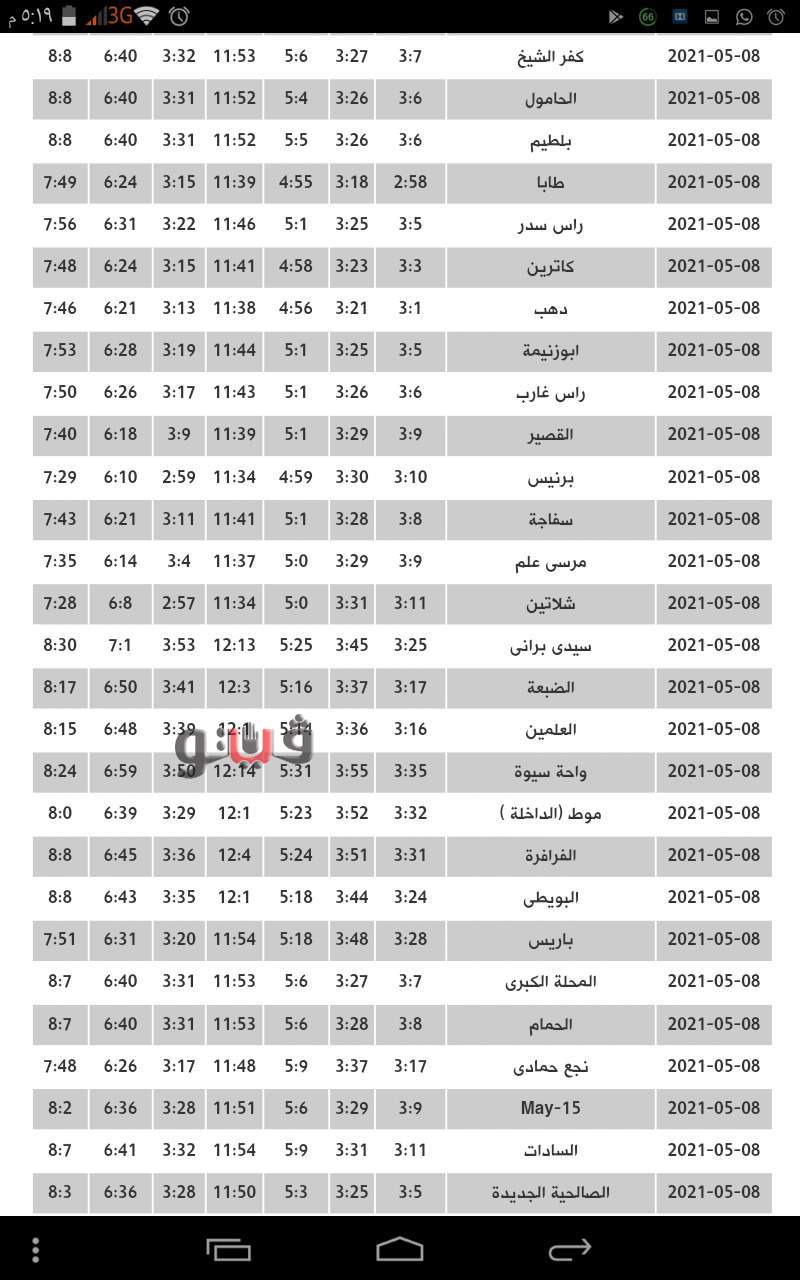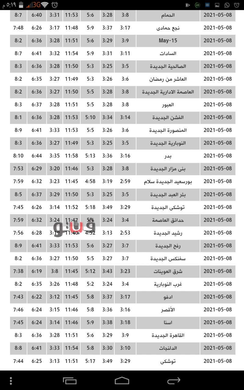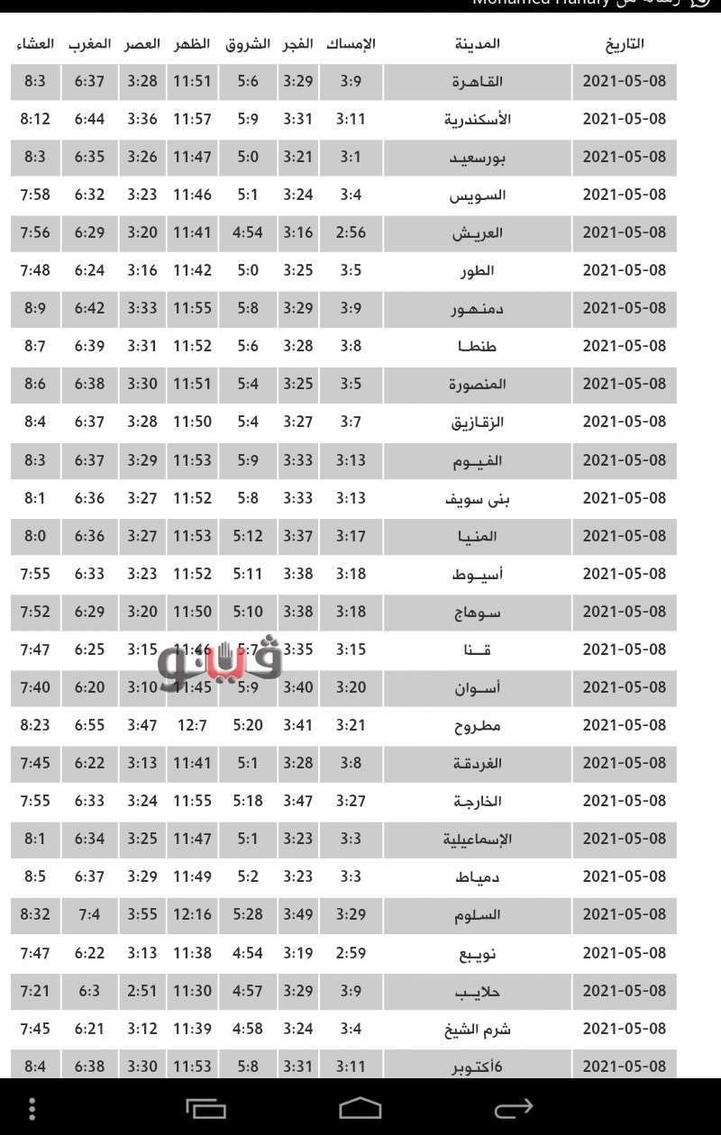 ويوضح الجدول مواقيت الصلاة اليوم كالتالي: