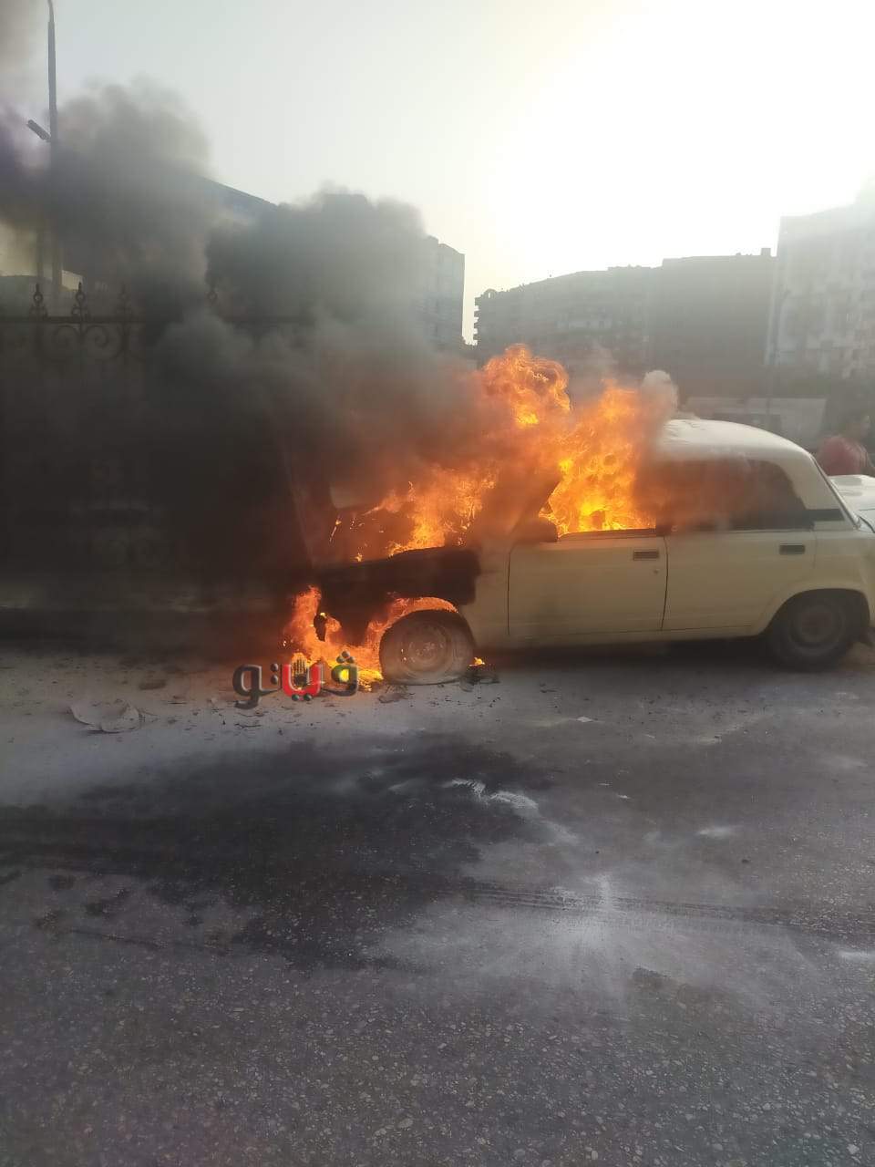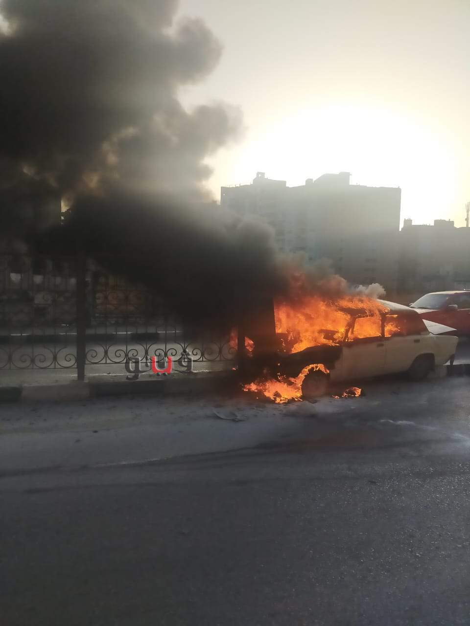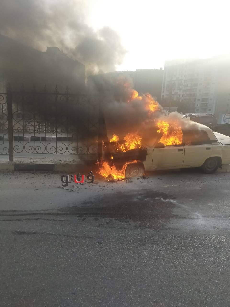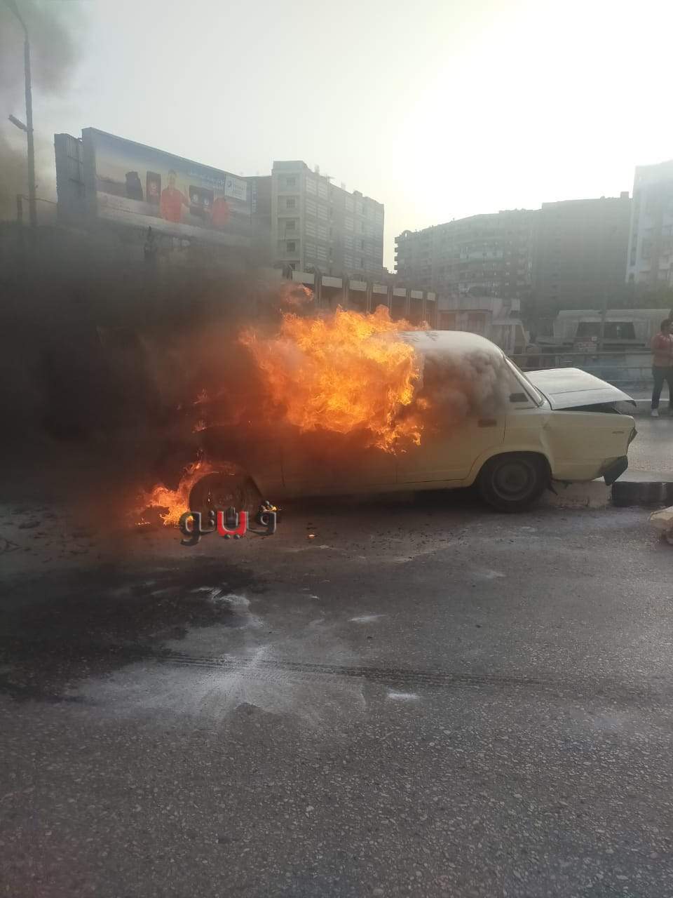 اشتعال سيارة أعلى كوبري المعرض بطنطا | صور