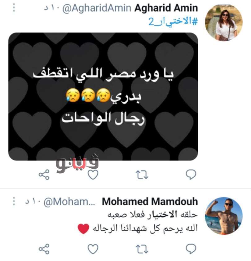 لكن أعمالهم فى التخريب اصطدمت بقوة رجال الشرطة حيث جرت معركة بطولية يوم الجمعة 20 أكتوبر 2017 سقط فيها 16 شهيداً وأصيب آخرين من رجال الشرطة.. وعقب انتهاء الحلقة اكتسح وسم "شهداء الواحات" تريندات مواقع التواصل الاجتماعي وتخطي حدود مصر حيث تفاعل الجمهور العربي مع أحداث الحلقة .. وعلق البعض بـ:" أحياء عند ربهم يرزقون".. فيما غرد آخر بـ:"حلقة غير عادية كشفت تضحيات كثيرة".
