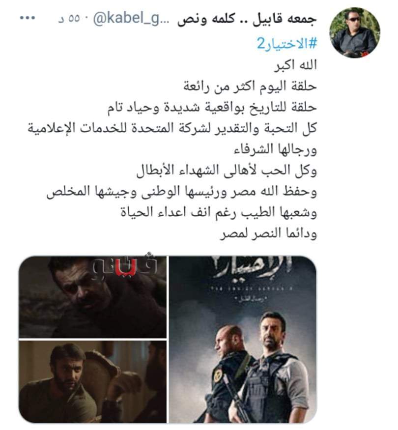 عرضت فضائية ON E الحلقة الـ25 من الجزء الثاني من مسلسل الاختيار بطولة النجمين كريم عبد العزيز وأحمد مكي.