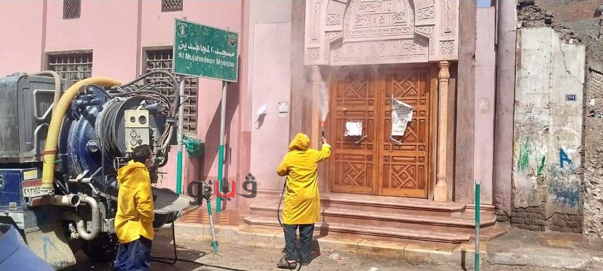 حملات تعقيم مكثفة للمساجد والسكة الحديد ومكاتب البريد بأسيوط | صور