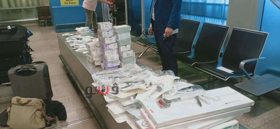 ضبط أمريكي حاول تهريب مناظير جراحية ومستلزمات طبية بمطار القاهرة | صور
