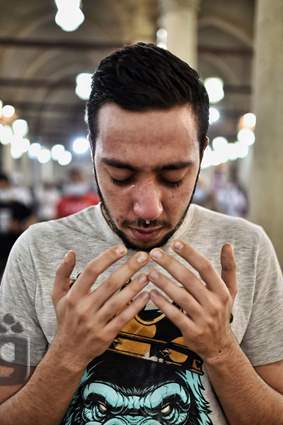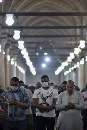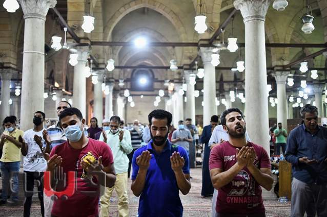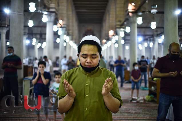 من المسلمين على أدائها في مسجد عمرو بن العاص بمصر القديمة.