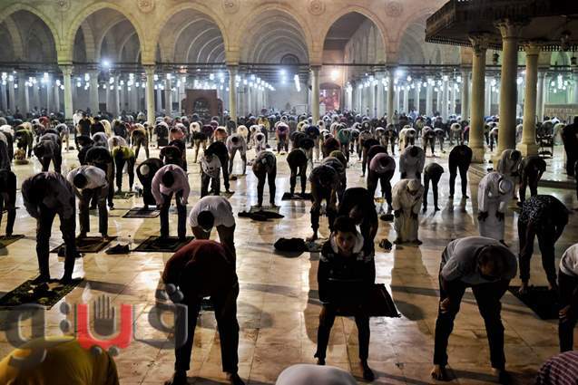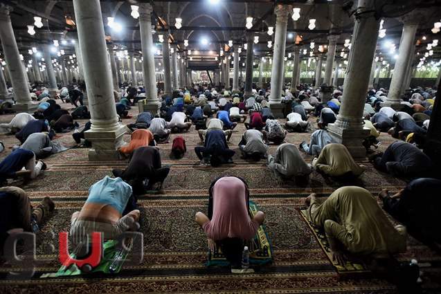 دموع المصلين تفيض بالخشوع في ليلة 27 رمضان بمسجد عمرو بن العاص | صور