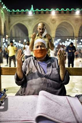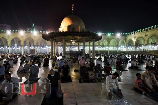 وخلال صلاة التراويح ضجت ساحة مسجد عمرو بن العاص ببكاء المصلين استبشارا بفرج الله فى ليلة القدر والفرج والمغفرة والفرحة بالطاعة والعبادة، يدعون لأنفسهم ووطنهم وإخوانهم، رجاء فرج قريب فى الدنيا ورحمة الله فى الآخرة.