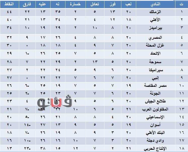 14 - الاسماعيلي 20 نقطة