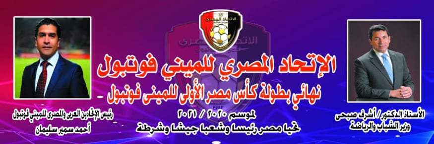 ينظم الاتحاد المصري للميني فوتبول " الكرة المصغرة" برئاسة أحمد سمير سليمان، الليلة ، ختام بطولة كأس مصر الأولي للميني فوتبول علي ملعب ستاد المركز الأولمبي بالمعادي والتي ستجمع نادي جزيرة الورد ( المنصورة ) وفريق الأمل ( القاهرة) بحضور الدكتور أشرف صبحي وزير الشباب والرياضة.