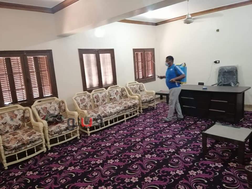 وقامت المراكز والمدن برش وتعقيم مباني الوحدات المحلية والجهات الحكومية، وعدد من المدارس، وبالأخص مدارس القرى وتوابعها وعدد من مكاتب البريد، كما يتم تعقيم المساجد.