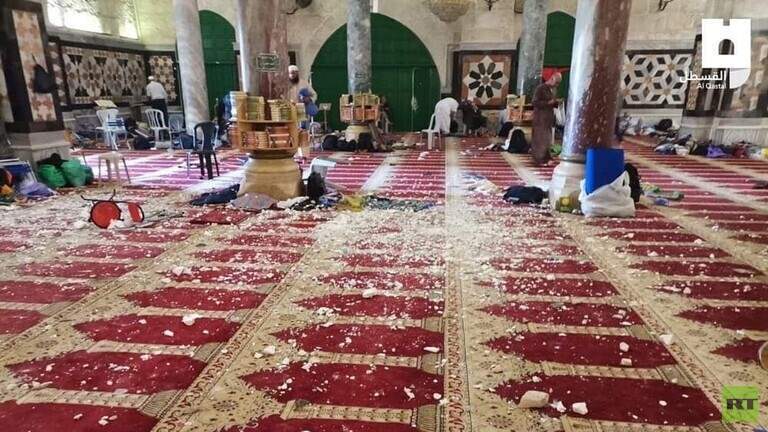 وعلي الفور وشرع المصلون في تنظيم ساحات المسجد من الحجارة وبقايا الرصاص المطاطي وقنابل الصوت والمسيلة للدموع التي غطت مساحات واسعة من ساحات المسجد.