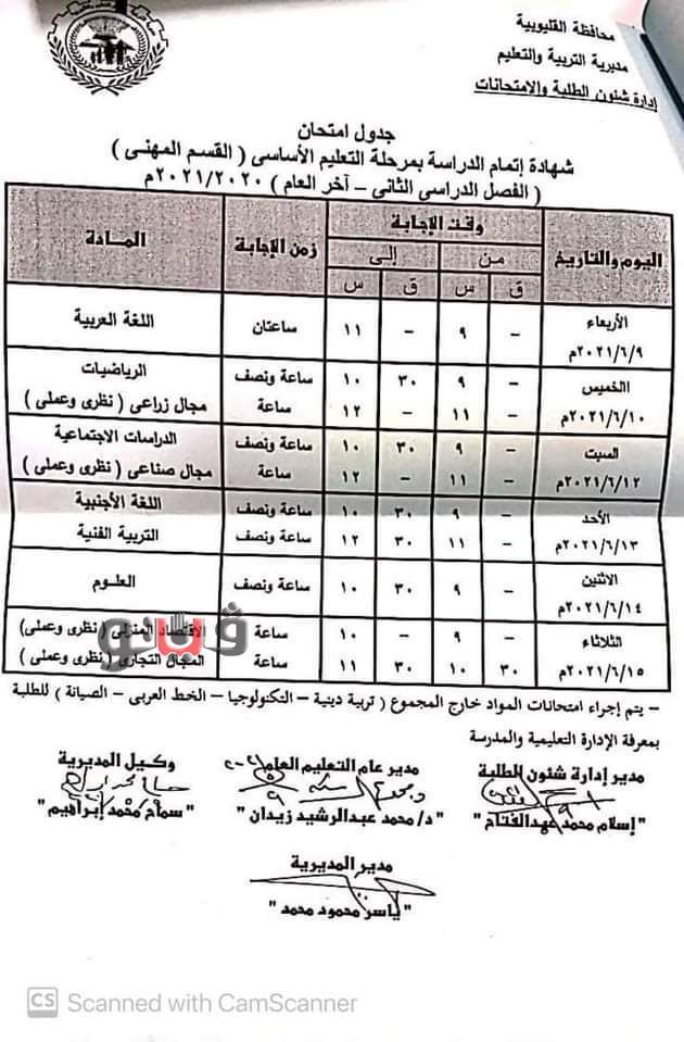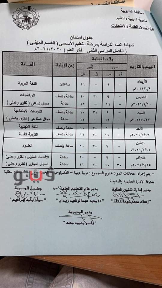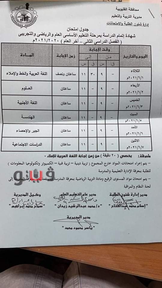 ننشر جداول امتحانات الشهادة الإعدادية بالقليوبية