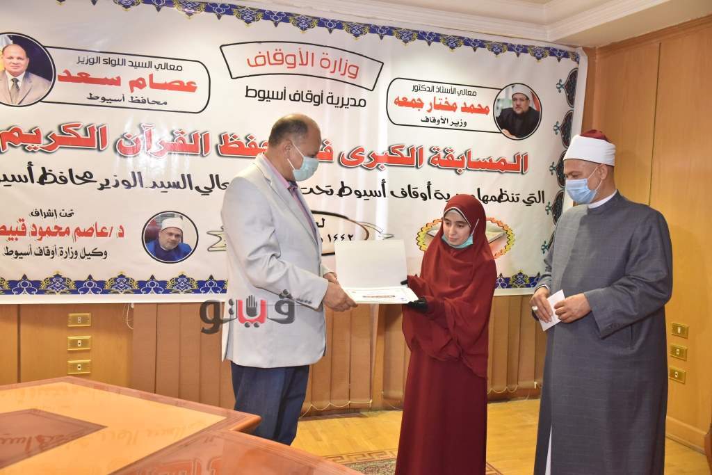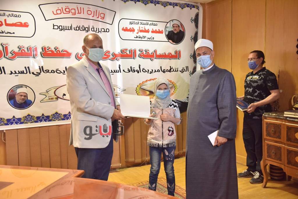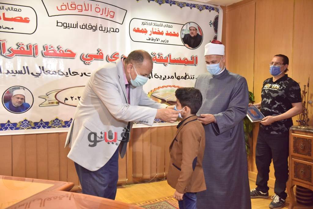 جاء ذلك بقاعة الاجتماعات بديوان عام المحافظة وبحضور فضيلة الشيخ عاصم القبيصي وكيل وزارة الأوقاف بأسيوط والشيخ محمد عبداللطيف مدير عام الدعوة بمديرية الأوقاف ، والشيخ ناصر محمد مدير المتابعة بأوقاف أسيوط ، وعدد من رجال الدين وقيادات مديرية الأوقاف بالمحافظة والفائزين بالمسابقة وسط تطبيق كافة الاجراءات الاحترازية والوقائية من تعقيم للقاعة وقياس الحرارة لجميع الحاضرين.