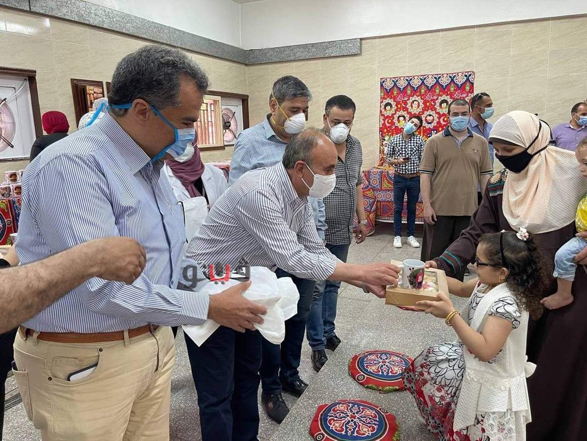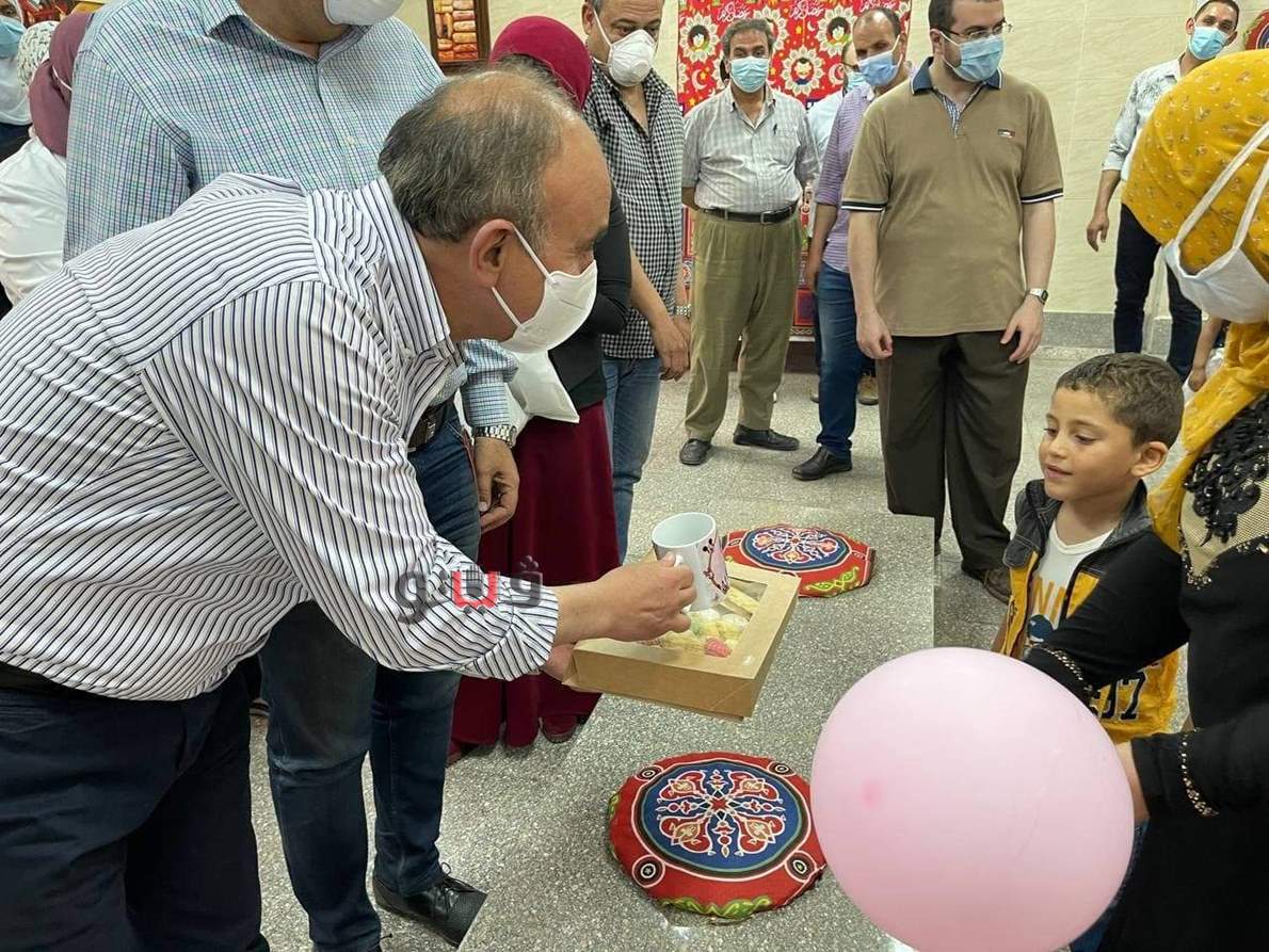 قام الدكتور عثمان شعلان رئيس جامعة الزقازيق، اليوم، بتقديم الهدايا لأطفال أمراض التمثيل الغذائي والحساسيات بمناسبة حلول أول عيد فطر بعد إنشاء مخبز مستشفى الأطفال الجامعى للتغذية العلاجية.