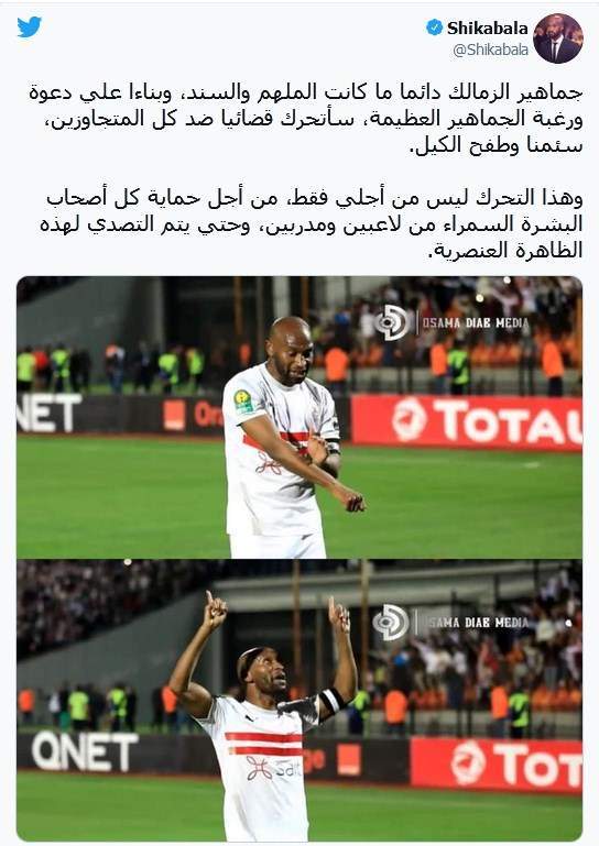 شيكابالا: سأتحرك قضائيا ضد كل المتجاوزين لحماية أصحاب البشرة السمراء