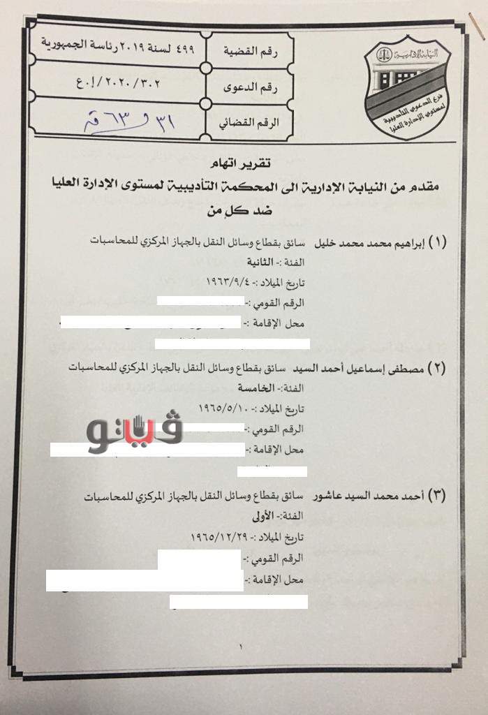 وتضمن تقرير الإتهام في القضية رقم 31 لسنة 63 قضائية عليا أن المحالين الستة إعتبارًا من 3 ديسمبر 2019 حتى شهر يوليو 2019 خرجوا على مقتضى الواجب الوظيفي ولم يؤدوا العمل المنوط بدقة وأمانة ولم يحافظوا على أموال الجهة التي يعملون بها.