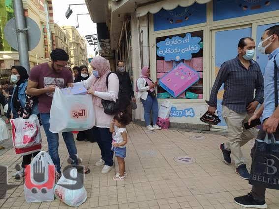 بالرغم من الزيادة المطردة في أعداد الإصابات بفيروس كورونا المستجد، وتحذيرات الحكومة المصرية بالابتعاد عن كافة الأماكن المزدحمة وكثيفة الأعداد، إلا أن الشوارع المصرية وخاصة في منطقة وسط القاهرة ومحيط محال بيع كعك العيد والملابس، كان الأمر مختلفًا تمامًا، يبدو وكأن المصريون أرادوا أن يستمتعوا بفرحة ولمة العيد وطقوس عيد الفطر الثابتة في كل عام بالرغم من فيروس كورونا، كل يحاول أن يقضي حاجته ويشتري ما ينقصه، ومع اقتراب موعد الإفطار تتزايد أعداد المارة ويبدأ التخبط، بديهي فالجميع "عايز يلحق يروح علشان الفطار"، لا تجد مساحة خالية في أي أتوبيس أو قطار بمحطة المترو، وبالتأكيد سوف لن تجد حتى مساحة فارغة بأحد الشوارع أو الأزقة والممرات!