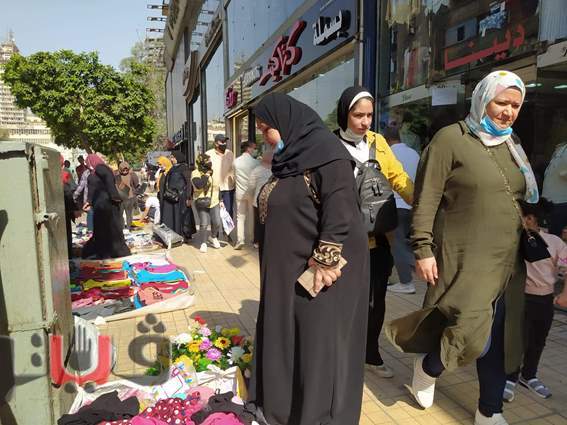 في منطقة العتبة وتحديدًا في شوارع 26 يوليو وشارع شريف ومحيطهما، حيث تتواجد العديد من محال بيع الكعك والبسكوت وكذا محال بيع الملابس للكبار والصغار، كأن الجميع استيقظ صباحًا وفوجئ بأن أول أيام عيد الفطر المبارك يتبقى عليه ساعات قليلة!، يصطف العشرات أمام كل محل من هذه المحال، البعض يطلع على الأسعار التي تقدمها المحال قبل أيام العيد بين الأصناف المحشية بالمكسرات والملبن والبسكوت والبيتي فور "أبو طعم جنان".