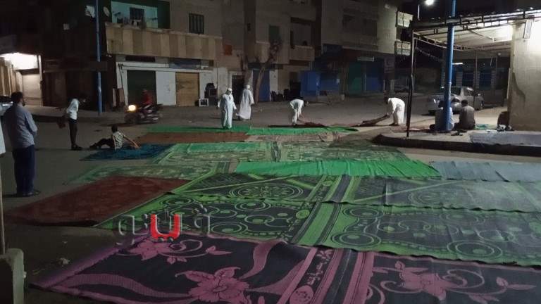 ورصدت "فيتو" قيام بعض الأهالي والمشايخ بمسجد عمرو بن العاص بمدينة مرسى مطروح بفرش الشارعين المقابلين للمسجد بالمفارش الأرضية لاستقبال المصلين الذي ترتفع أعدادهم عن داخل المسجد.